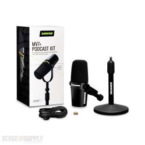 Shure MV7+-K-BNDL Dynamic Podcast LED Microphone with Stand Black