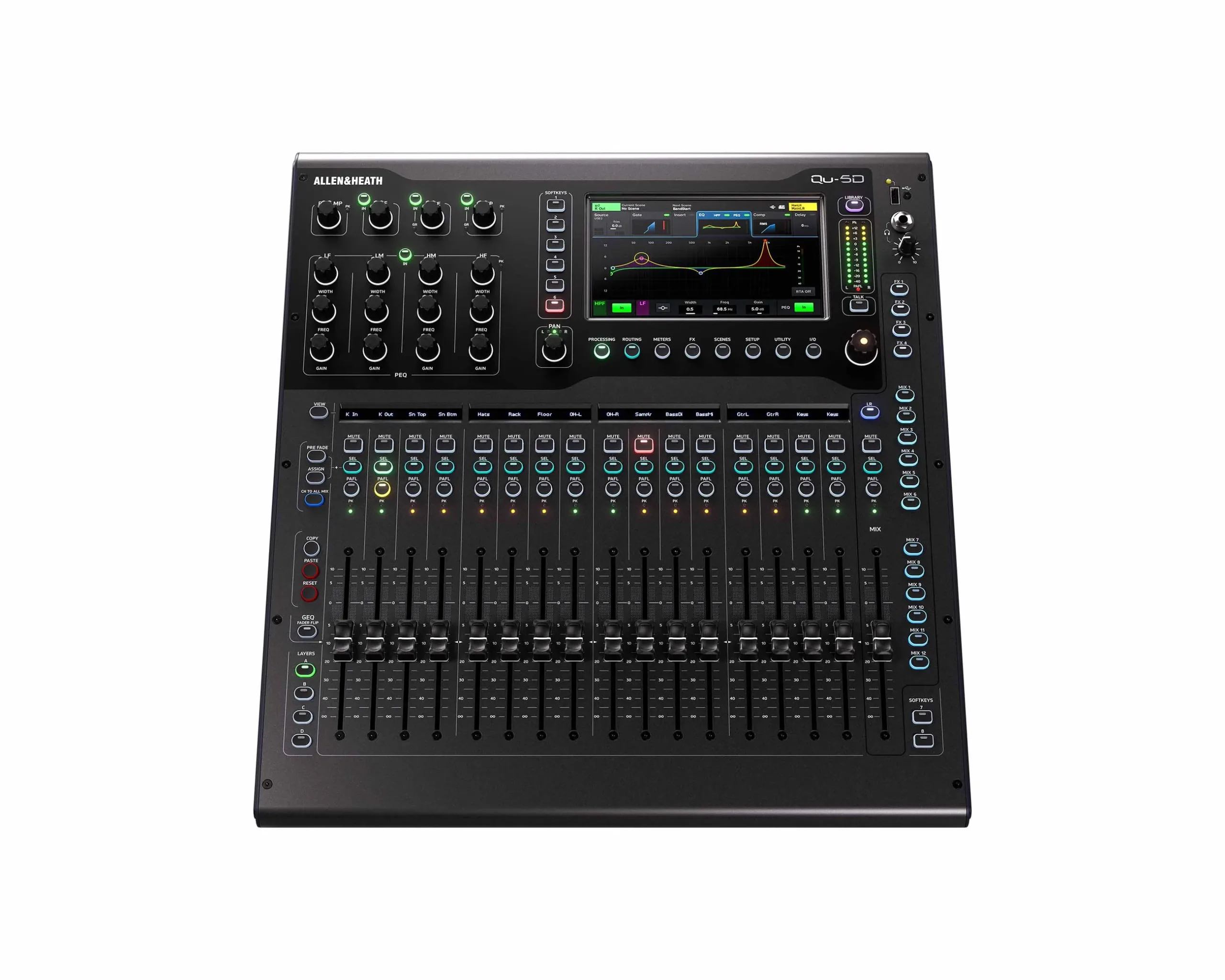 The Qu-5 and Qu-5D are multi-purpose mixers suitable for live music/band use, AV and install, studio and broadcast. Workflow and UI have been designed to make operation easy for inexperienced users or volunteers, provide familiarity to those transitioning from analogue mixing and give quick access to more advanced features for the experienced engineer.