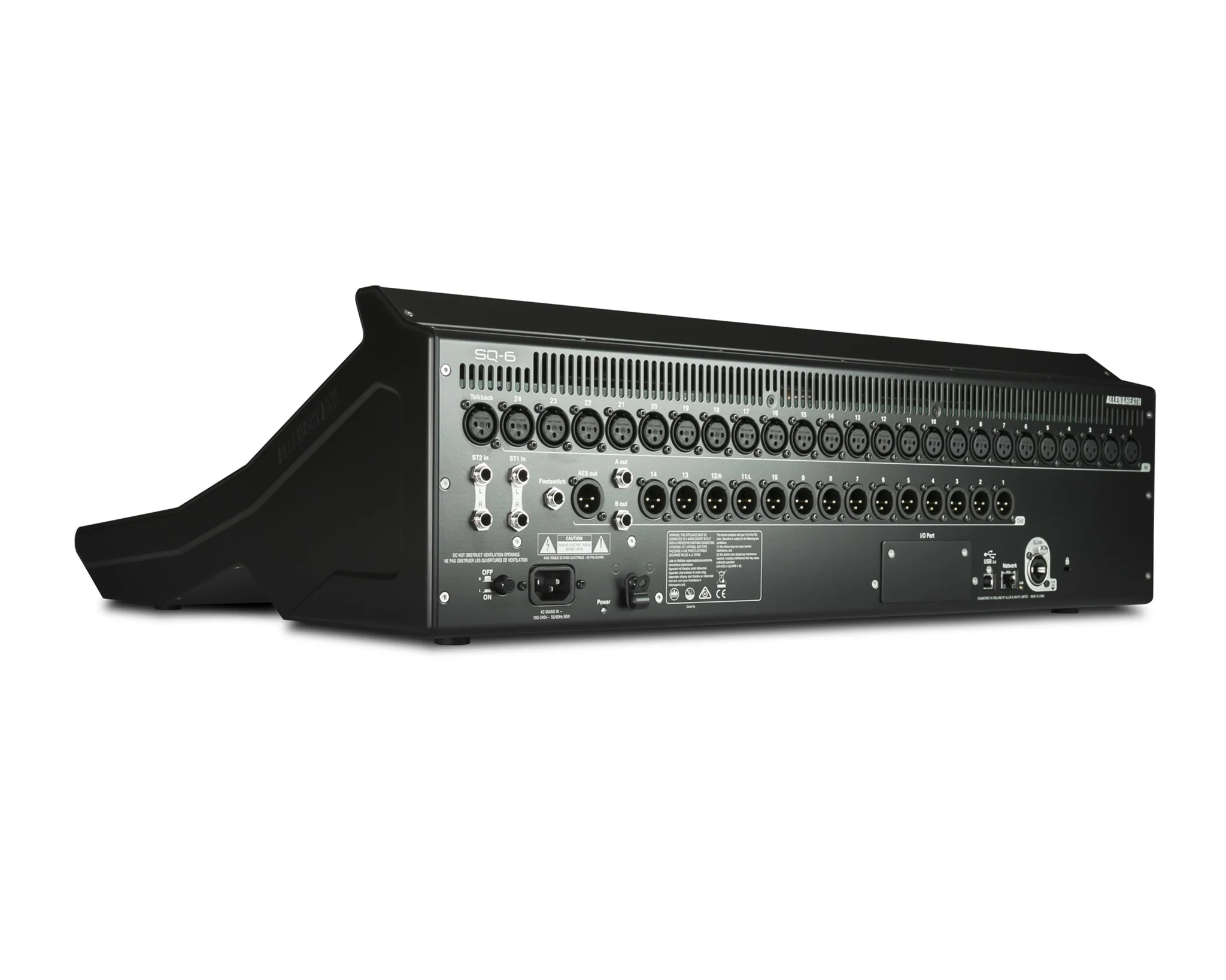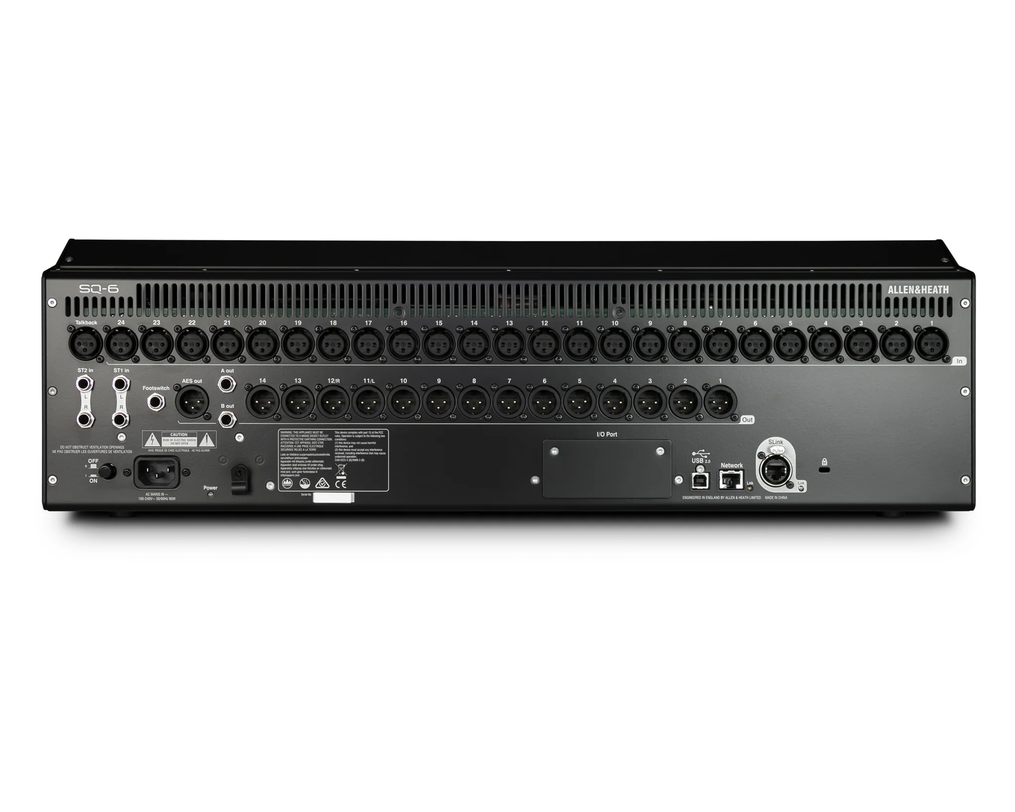 - Expandable up to 48 mics: SQ-6 has all the onboard I/O you need for standalone operation. Thanks to its SLink intelligent port, SQ can also be expanded up to a total of 48 mic inputs via a family of 96kHz and 48kHz rack and stage box expanders (e.g. AB168, AR2412, AR84 and DX168), making it a flexible, mix ‘n’ match solution for owners of other Allen & Heath digital systems. You can also link your SQ directly to another SQ or even a dLive system.