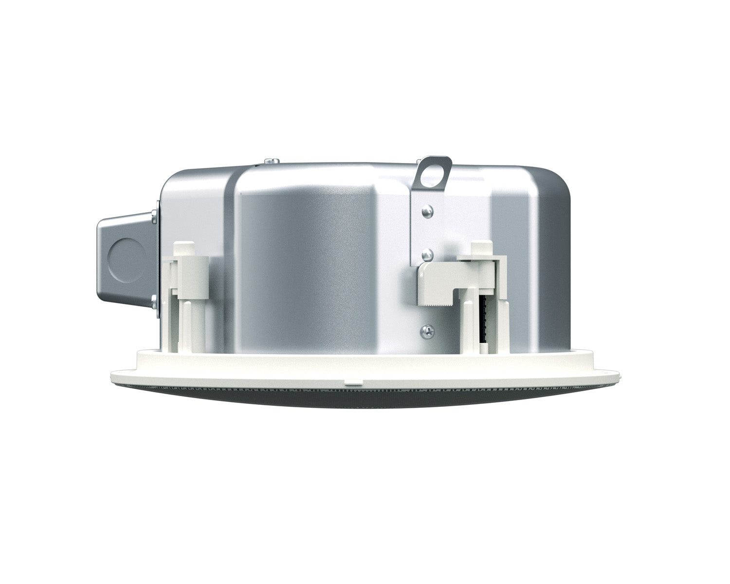 The ACS-55TS brings full-frequency response, consistent coverage and intelligibility to a wide range of architectural environments ‚Äî from hotels and concourses to retail outlets, bars and restaurants.Comprising a 5.25″ (100mm) LF driver and a 0.75″ (19mm) silk-dome tweeter, the ACS-55TS produces 113dB peak output at 1 metre and has a high-fidelity sonic character ideal for both music and speech reproduction. Its ported design delivers strong bass that extends down to 79Hz.The wide 150¬∞ conical coverage of the ACS-55TS makes it particularly suitable for low ceilings and reduces the number of speakers required for even coverage ‚Äî leading to a reduction in installation cost. It features a shallow backcan of only 100mm for installation in ceilings with a minimum cavity depth.It incorporates a high-quality transformer for 70V/100V line operation, with transformer taps selected by a rotary switch accessible behind the powder-coated, perforated steel grille. The switch also provides for 16-ohm low impedance operation ‚Äî enabling four or more speakers to be driven in parallel from a single amplifier channel. For full-bandwidth protection, the low and high-frequency sections are individually protected against overload by auto-resetting thermal fuses.