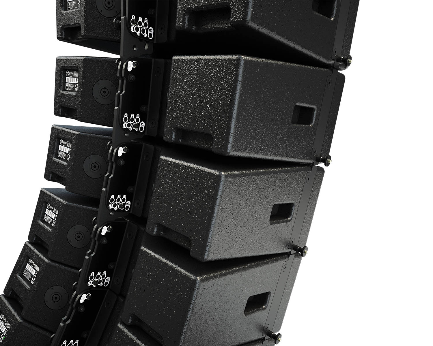 WPM is incredibly versatile. Its very small footprint and light weight make it the system of choice for smaller venues which require superb fidelity, coverage consistency and control from an ultra-compact line array. With a peak SPL of 130dB peak, it is also very powerful ‚Äî a 12-box array will throw beyond 35 metres (115ft) and produce live music at high levels in up to 3000-seat venues. It embodies the very latest acoustic technology in an ultra-compact enclosure and is the ideal system for small-to-medium scale theatres and live music venues, AV events and installations in concert halls, ballrooms and HoW.A passive 2-way system with an impedance of 16 ohms, it can be driven in blocks of 1, 2, 3 or 4 resolution configurations. With a complement of 2 x 6.5″ (165mm) LF drivers and a vertical column of 3 x 1.4″ (35mm) aluminium dome HF drivers, the acoustic design of WPM is uniquely innovative. The LF drivers are located in the side walls of the HF horn ‚Äî an arrangement which would introduce acoustic cavities which would degrade the horizontal dispersion if conventional cone drivers were used. WPM’s drivers adopt an elegant solution by having solid moulded diaphragms which match the contours of the horn walls and maintain the continuity of the horn profile. Each LF driver also features a demodulation ring in the neodymium motor system to minimize distortion and maximise mid-band output.In the triple-driver HF section, each individual HF wavefront is precisely coupled to the horn throat via a short waveguide for faultless 100¬∞ horizontal constant directivity coverage.