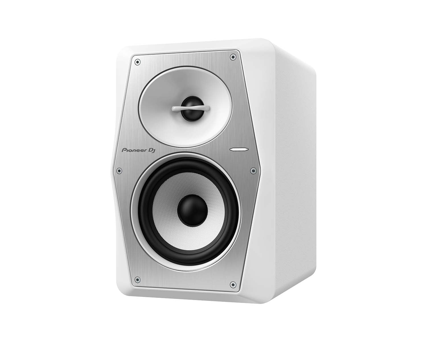 High-quality componentsEvery VM series speaker includes a Class D amplifier with 96 kHz sampling DSP to enable wide-bandwidth audio reproduction. Its highly efficient performance results in low distortion and high-energy sound. The 4-mm-thick rigid aluminium front baffle further suppresses resonance and vibrations, delivering sound that's authentic to the original source.Aramid fibre woofer cones and Vortex Bass AcceleratorAramid fibre woofer cones provide outstanding punch that you'll feel in the bass and low-mid frequencies. These newly developed cones are 30 percent lighter than conventional paper-lined Aramid cones, making them stronger with deeper sound.The Vortex Bass Accelerator ensures that low-end audio is tight and free from unwanted vibrations, as ribs in the bass reflex port mean that air flows freely from the speaker to deliver pure sound.Constant directivity hornMid and high-frequency sounds are delivered with power thanks to the constant directivity horn, which also creates a broad, uniform listening space. The shape of the horn and the woofer edge are specially designed so the flat playback frequency crosses over to the tweeter easily, resulting in a natural sound.DSP controlAll VM series speakers are voiced flat to ensure you hear the natural sound of the music. To help you tweak the output and find the sound that's perfect for the room you're working in, each speaker includes DSP settings. On the rear panel, you'll find 2 knobs: Low EQ and High EQ. Without needing to look, you can click the knobs into 4 different positions each, giving you 16 possible EQ settings that are simple to engage. Choose the one that sounds best for DJing or producing music in your home or studio, depending on the shape, size, and construction of the room.Fresh, professional designThe brand-new design of the hexagonal aluminium front baffle brings a fresh look, as well as improved sound quality and durability. It cuts down unwanted vibrations for lower distortion while the tweeter protective guard reduces the risk of damage to the high-frequency diaphragm. And the Alumite treated brushed texture gives the speakers a professional finish so they look right at home next to Pioneer DJ gear.VM-50 BlackThe VM-50-W is also available in black. Its pristine finish complements any setup, especially one including other black products.