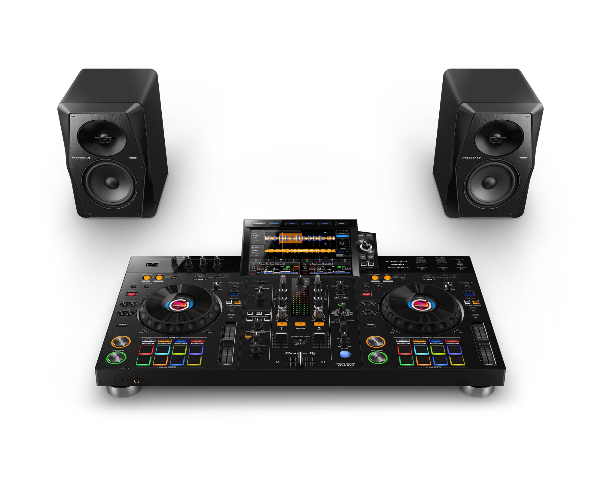 The XDJ-RX3 is an all-in-one DJ system with significant upgrades compared to its predecessor, the XDJ-RX2. It boasts a variety of features from the club-standard CDJ-3000 multi player and DJM-900NXS2 mixer, plus a brand-new 10.1-inch touch screen.The 10.1-inch touchscreen is the largest ever on a Pioneer DJ all-in-one system. It features a high resolution and frame rate so you’ll see everything clearly, including the smooth waveform. Plus, a fresh GUI design and a host of new features mean you’ll enjoy easier navigation for quick browsing and accurate mixing. For example, you can touch any of the stacked icons on the left side of the screen to instantly display the relevant information for each track.By hitting the Performance Pads in Release FX mode, you can instantly change the energy of your mix, whether you want to add drama to a section of a track or create an exciting moment before transitioning to another song on the other deck. Choose from 8 effect types: Vinyl Brake (Short/Long), Backspin (Short/Long), Echo Out, Build Up, Mute, and Ducking.The LCD screen in the center of each jog wheel indicates the playhead position and you can choose to display artwork for a quick visual reminder of which track is loaded on the deck. The responsiveness of the jog wheel rotation has been significantly improved compared to the XDJ-RX2 and you can make the ‘weight’ of each jog feel just the way you like with the Feeling Adjust control.