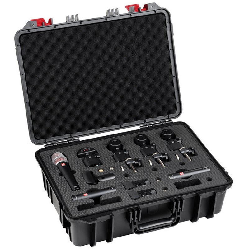 The SE Electronics V Pack Arena is able to register an entire drum kit in all its glory and on the largest stages. The seven microphones include a V kick with ‘mid-scoop’ and ‘tik’ switches fitted to the back for precise bass drum amplification; a set of V Beat tom microphones come with convenient V Clamps for clipping to the rim and, perhaps the most important of all is the V7 X snare microphone which gives you the snare sound you’d expect. Two SE8 small-diaphragm overhead condenser microphones take care of the cymbals and complete the picture and the whole pack comes tucked up in its very own rugged plastic V Case.