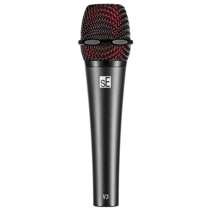 Live vocal mics have to perform under the most extreme circumstances, giving them one of the toughest jobs in music. Fortunately, sE Electronics’ V3 dynamic vocal microphone is built to withstand the rigours of life on the road. It’s extremely robust thanks to its rugged metal housing and steel grille. Small details like the bevelled edge around the grille to stop if from rolling away show you the kind of detail and thought that went into its design. The V3 has a gold-plated XLR connector for a flawless signal and an internal windshield to prevent the sound of plosives. If you don’t like the red windshield, sE Electronics has even included another one in black. The specialised voice coil with cardioid pickup pattern is suitable for instruments as well as vocals and the patented shock mount ensures exceptionally low handling noise. The V3 comes complete with a mic clip, a thread adapter, an extra internal windshield in black and a carrying pouch.