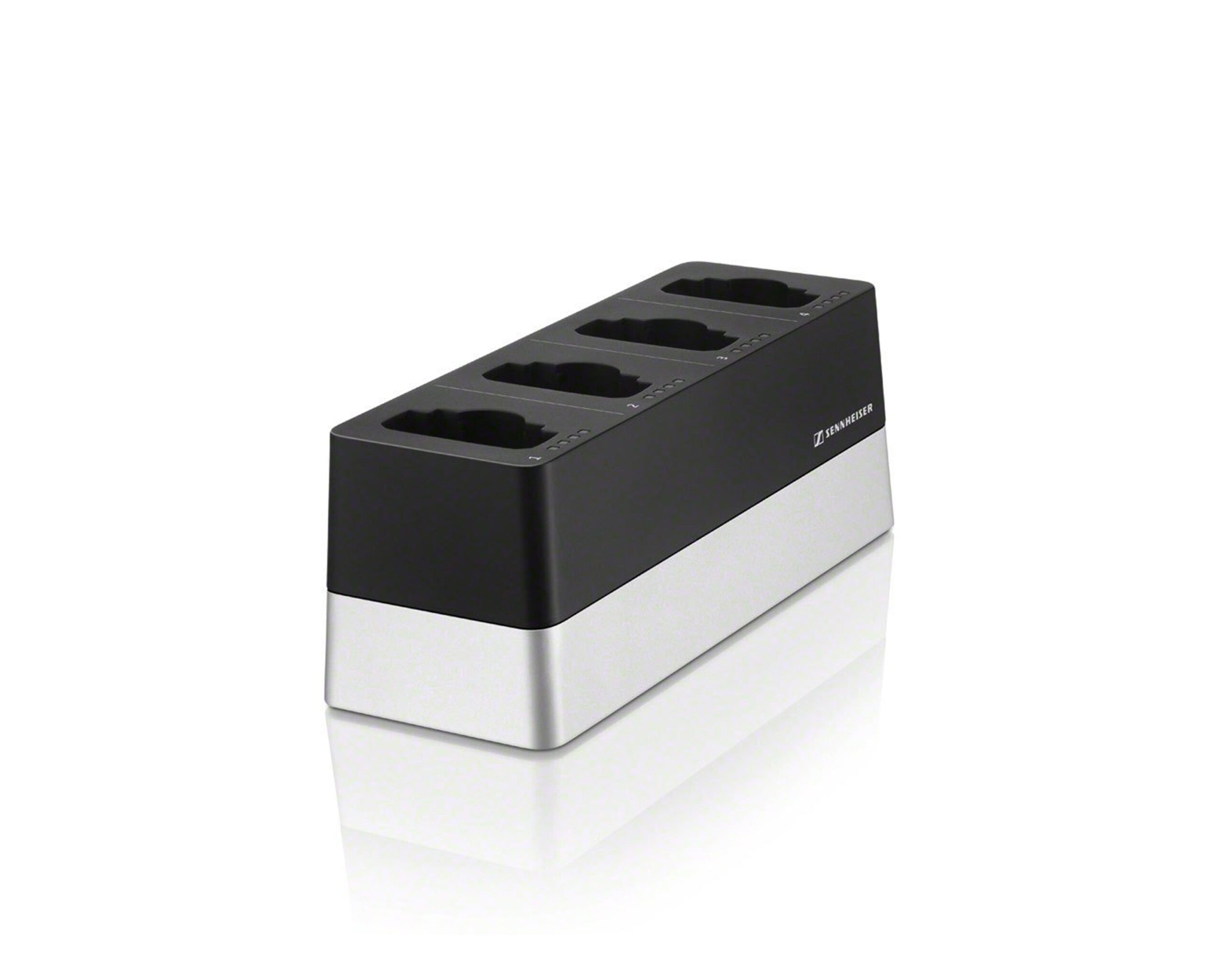 The CHG 4N is a network enabled charger featuring four indiviual charging bays. These can either be used for the SL Bodypack DW or the SL Handheld DW. Each bay is combined with 4 LEDs to indicate the corresponding battery status of the mobile device.The flexible network interface provides IPv4 and IPv6 compatibility for seamless integration. All settings and status information can be monitored and remote controlled with the Sennheiser Control Cockpit.