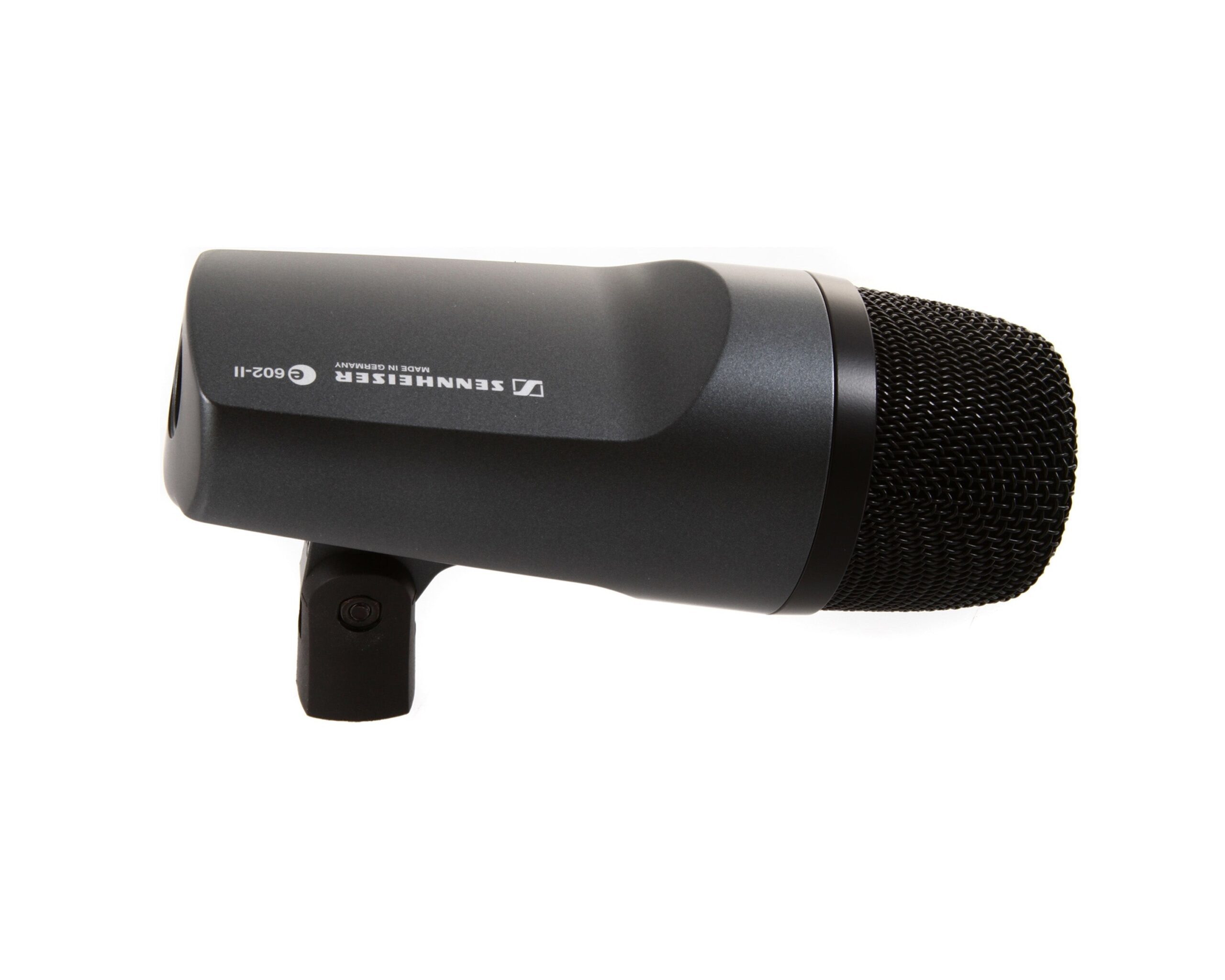The E 602 II is a cardioid instrument microphone especially suitable for use with bass drums, bass guitar cabs, tubas and other low frequency instruments.A dedicated bass microphone, the e602 combines a lightweight high-performance voice coil with a traditional large diaphragm capsule design to deliver very low bass response and fast transient signals. Low frequency extension and mid band attenuation produces an ultra-smooth pre-shaped signal; the microphone may be used without corrective equalisation. There is an integrated stand-mounting adapter, so no stand clamp is included.