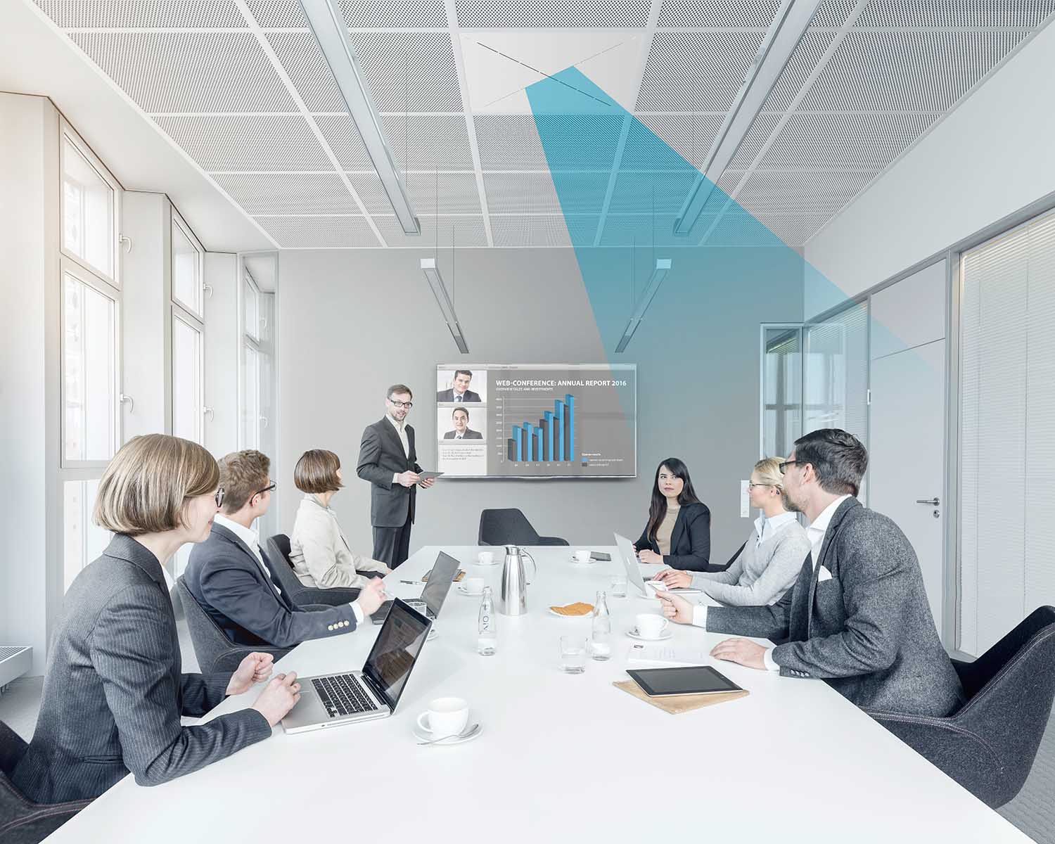SL CM FB is a ceiling surface mounting bracket to install the TeamConnect Ceiling 2 microphone array on closed ceilings.
