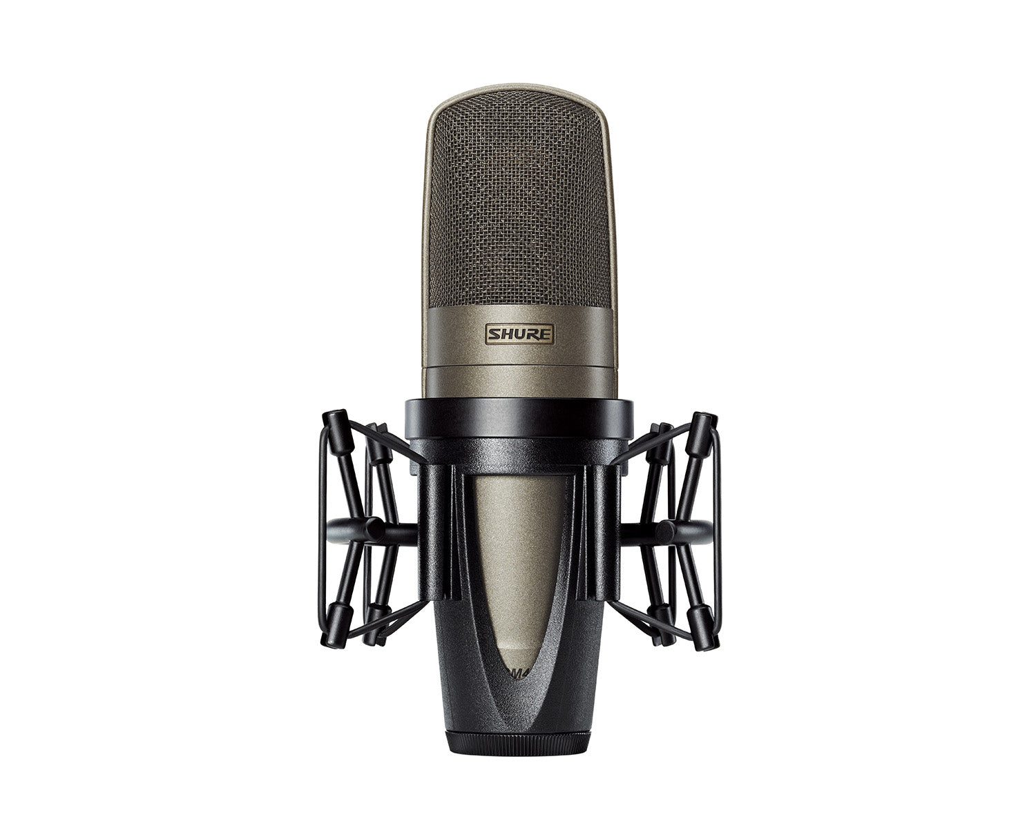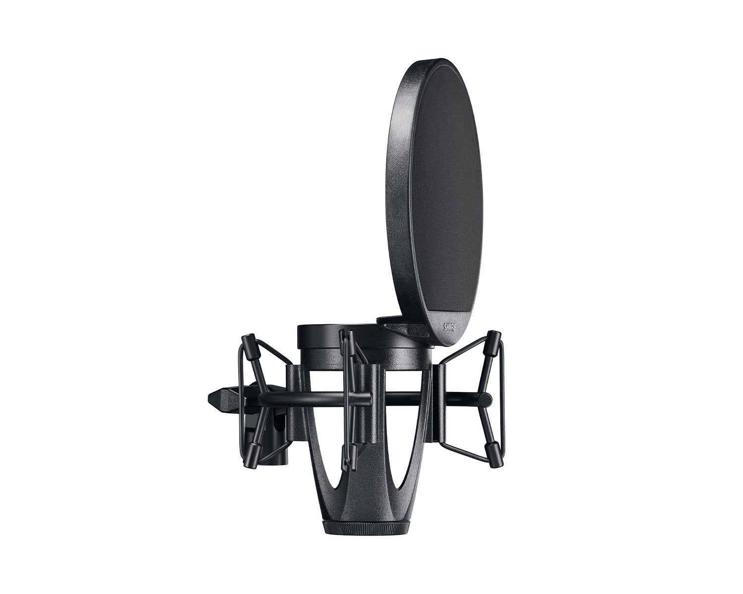 - Open cage ShureLock® rubber suspension shock mount with low-profile Popper Stopper™ magnetic pop filter produces a natural space between performer and microphone