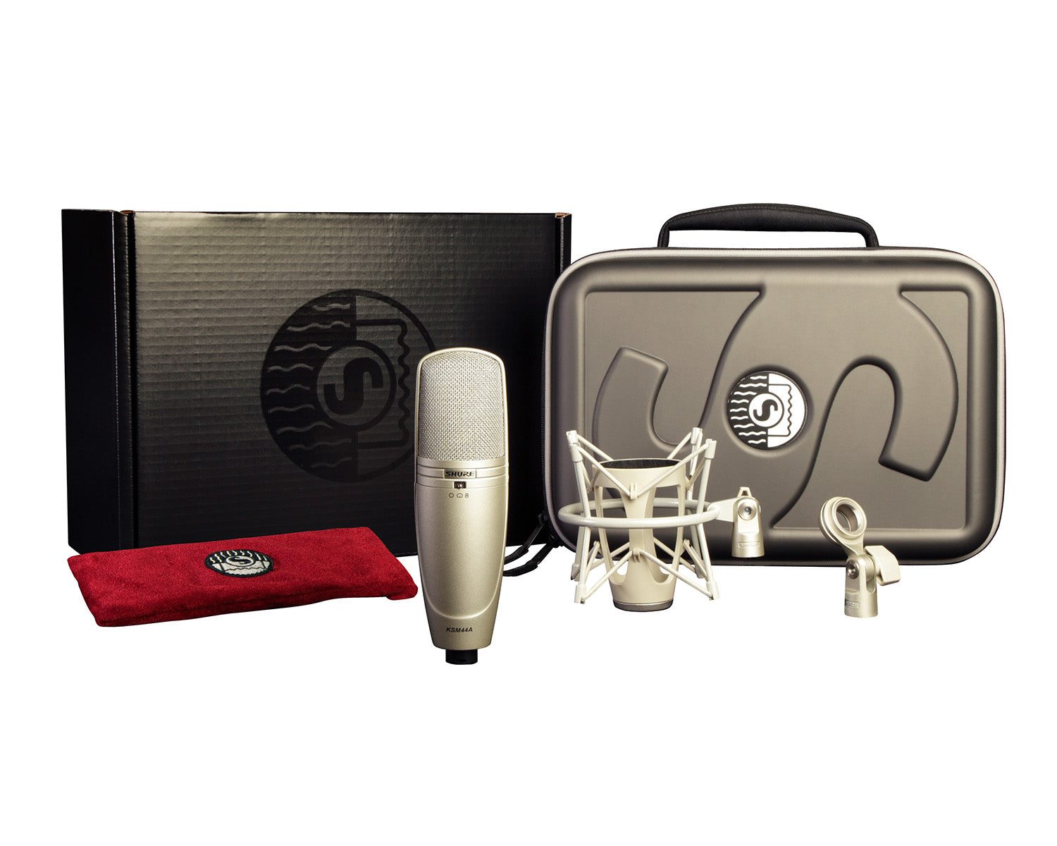 The Shure® KSM44A is a premium, large-diaphragm, side-address condenser microphone with multiple polar pattern options (cardioid, omnidirectional, bidirectional). The refined and sophisticated design of the KSM44A features externally biased, dual 1-inch diaphragms, extensive internal pop filtering and Prethos® advanced preamplifier technology for a ground-breaking threshold minimum of self-noise. The KSM44A is the premier choice for the highest level of professional studio and stage performance.