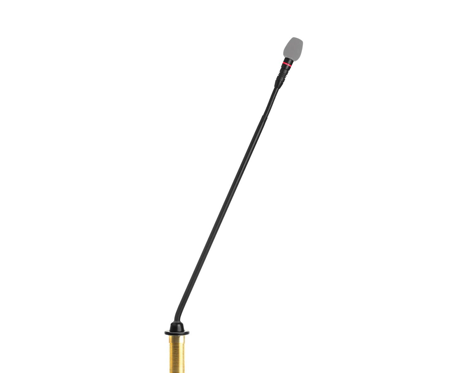 The MX415 surface mount version is a gooseneck microphone with a Bi-Colour LED or light ring status display. It has a 38.1 cm gooseneck and is suitable for boardrooms and other sites where aesthetics are important.