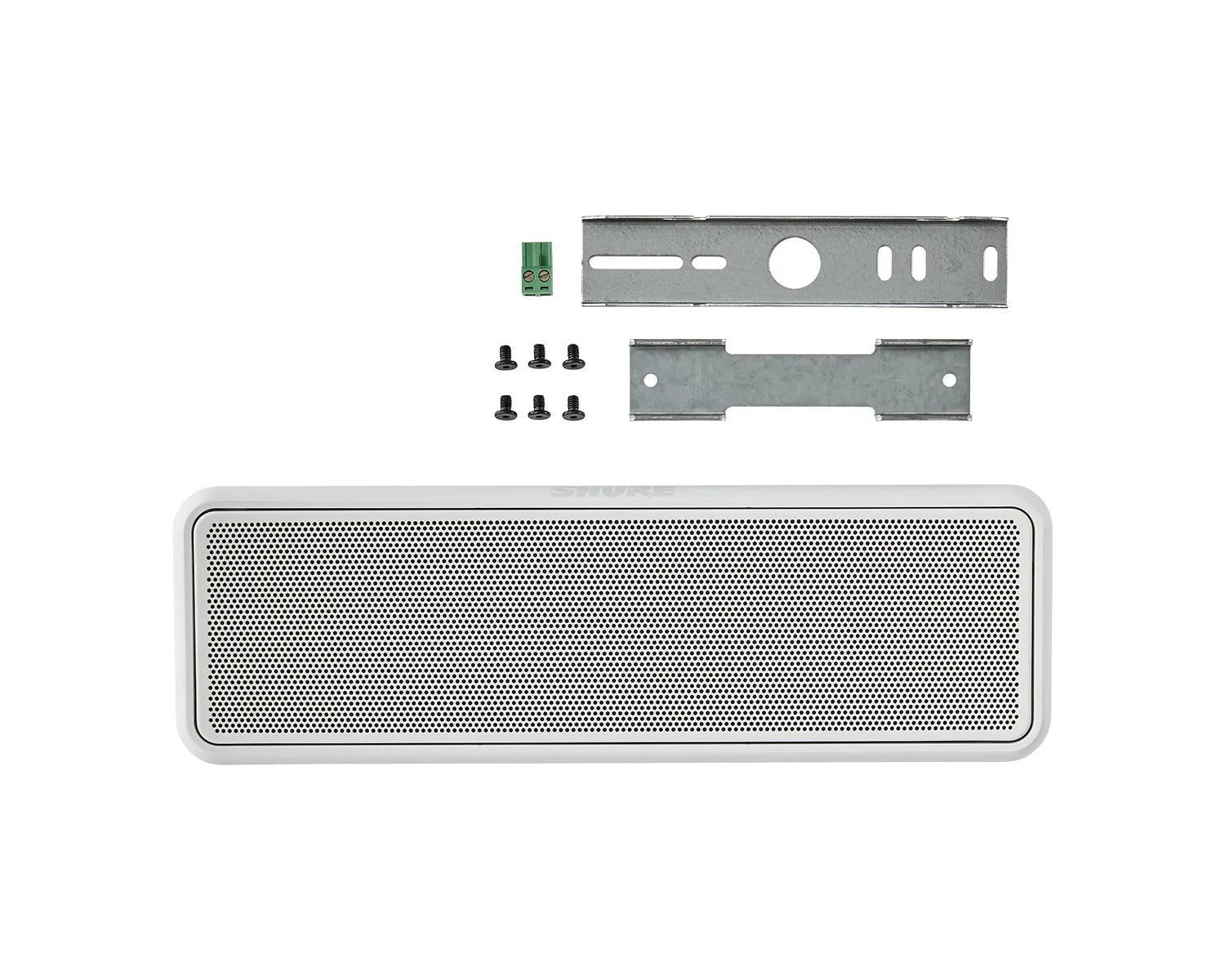 - Compact design with only 2.5-inch depth can be wall mounted horizontally or vertically, or on-ceiling with included mounting hardware (Note: Shure recommends the use of an additional safety tether for overhead components.)