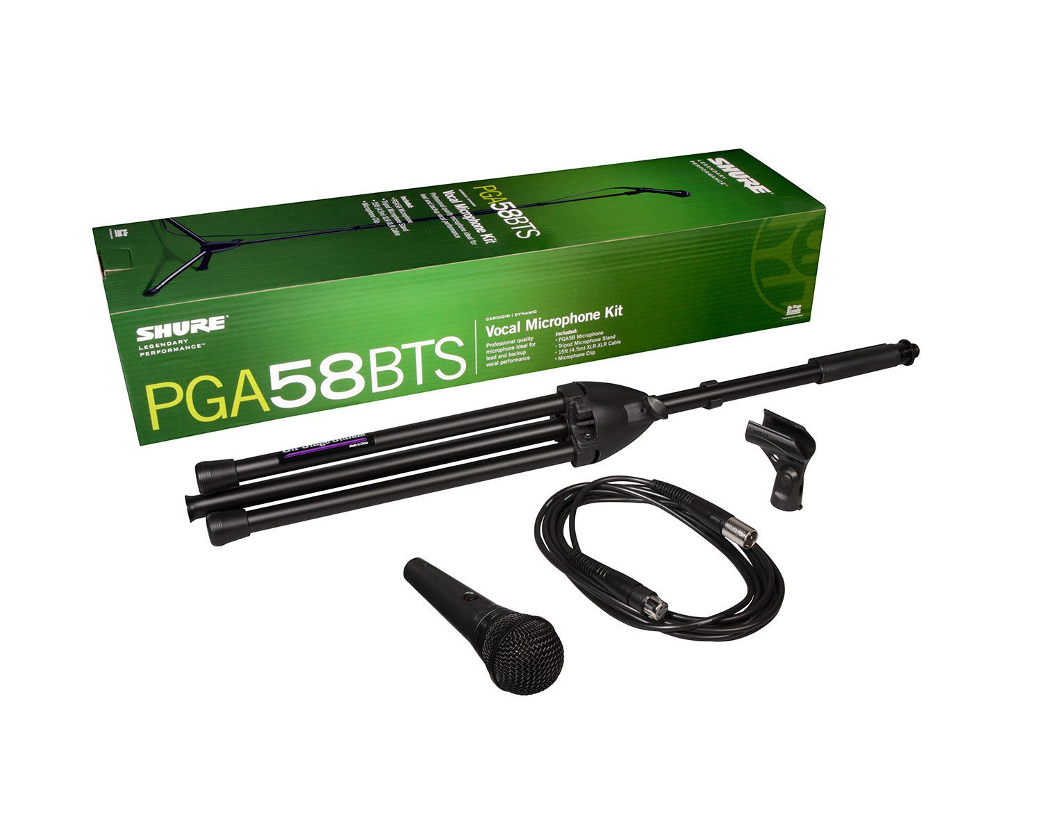 Shure PGA58BTS Cardioid Dynamic Microphone XLR Cable + Tripod Stand