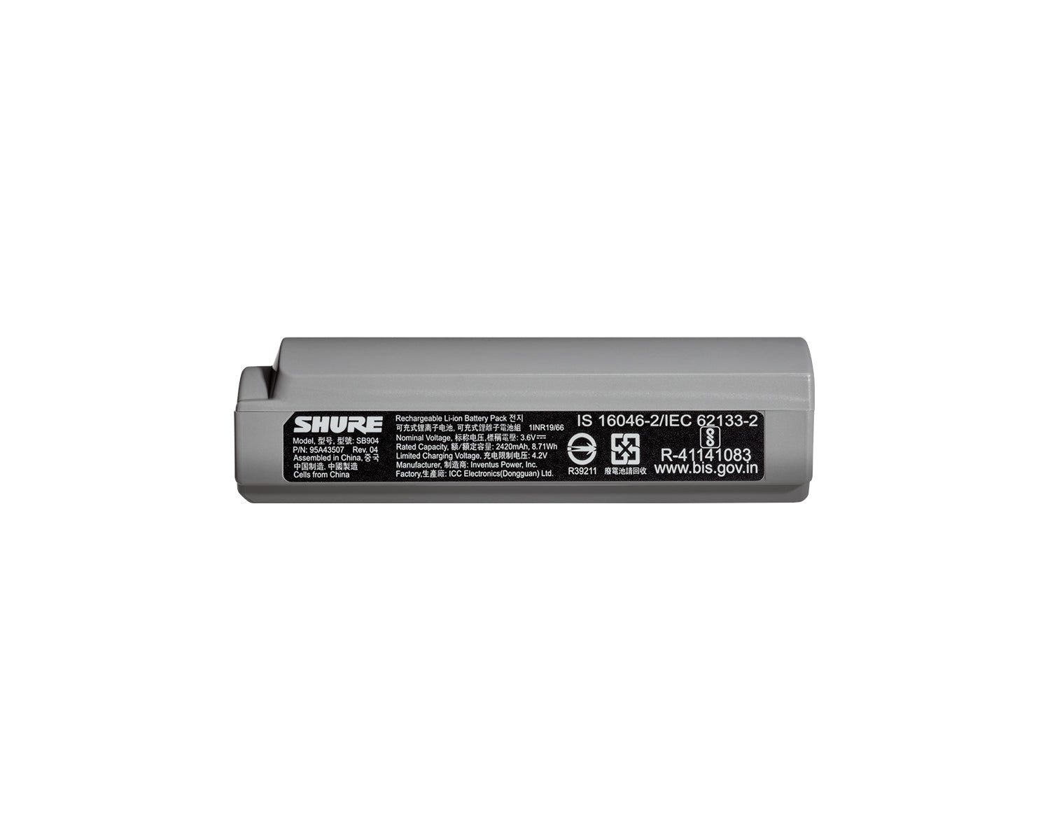Shure SB904 Rechargeable Battery for GLX-D+ Wireless Mic Systems