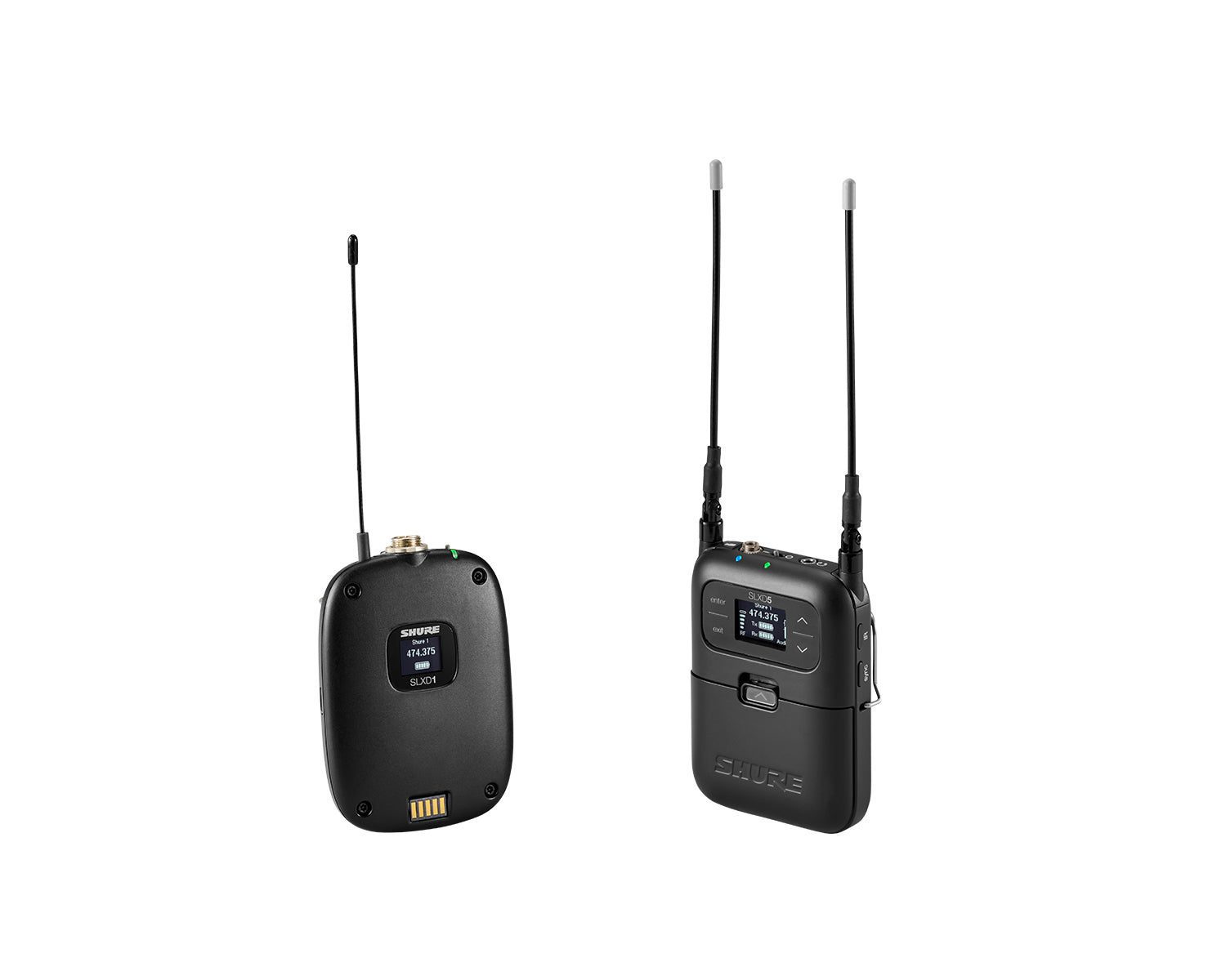 Featuring the SLXD1 Bodypack wireless transmitter, SLXD15 provides transparent digital audio and rock-solid RF stability for videography, ENG and broadcast applications.The SLXD15 Portable digital wireless bodypack system delivers transparent, 24-bit digital audio and rock-solid RF performance for videographers, ENG and field production, film and location sound applications. Operate up to 32 compatible systems per 44 MHz band, with easy setup and optional rechargeability accessories. The SLXD1 features a TQG connector for adding your choice of lavalier microphone. Includes SLXD1 bodypack wireless transmitter, SLXD5 single-channel portable receiver, two zippered carrying pouches and a pair of AA alkaline batteries (no lavalier included).