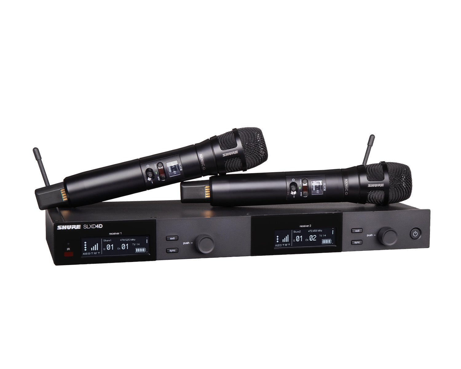 The SLXD24D/N8CB Dual Wireless System delivers transparent, 24-bit digital audio and rock-solid RF performance for a wide range of applications, from day-long presentations to nighttime performances. Operate up to 32 compatible systems per 44 MHz band, with easy setup and optional rechargeability accessories for wireless excellence, wherever required. Ships with SLXD4D dual-channel receiver and 2 SLXD2/N8CB handheld transmitters, including Nexadyne‚Ñ¢ 8/C wireless capsules, with antenna and rackmount accessories and 4 AA batteries. Featuring the Nexadyne‚Ñ¢ 8/C Cardioid Dynamic Microphone capsule on top of the SLXD2 handheld wireless transmitters, SLXD24D/N8CB provides transparent digital audio and rock-solid RF stability for lecture halls and live performance.