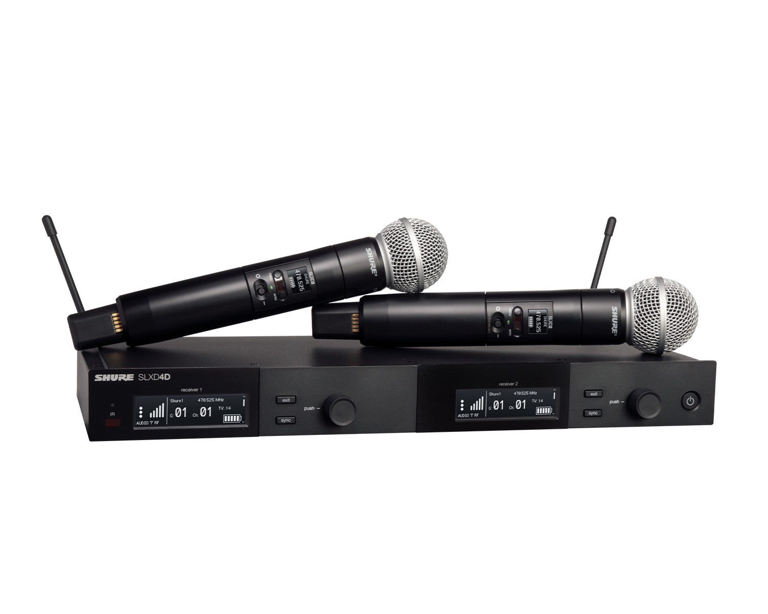 Featuring two legendary SM58® Cardioid Dynamic Microphone capsules on SLXD2 handheld wireless transmitters, the SLXD24D/SM58 provides transparent digital audio and rock-solid RF stability for lecture halls and live performances.The SLXD24D/SM58 Wireless System delivers transparent, 24-bit digital audio and rock-solid RF performance for a wide range of applications, from day-long presentations to nighttime performances. Operate up to 32 compatible systems per 44 MHz band, with easy setup and optional rechargeability accessories for wireless excellence, wherever required. Ships with SLXD4D dual-channel receiver and two SLXD2/SM58 handheld transmitters with antenna and rackmount accessories and 4 AA batteries.