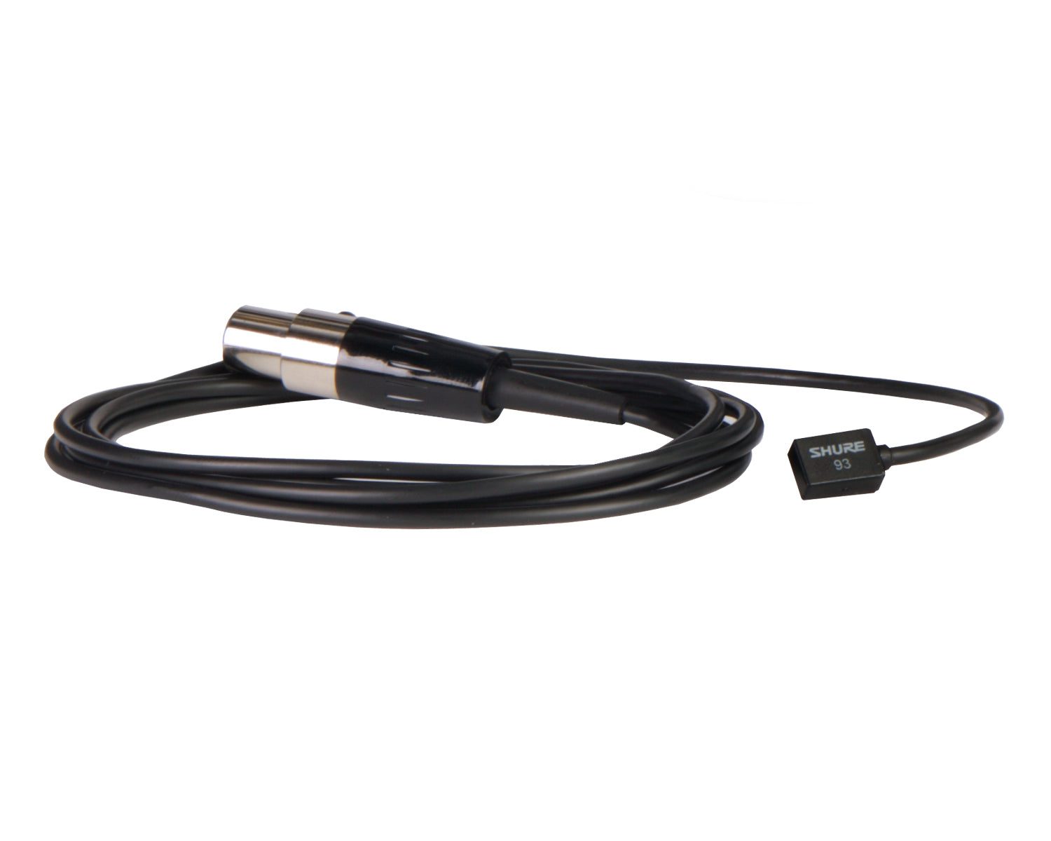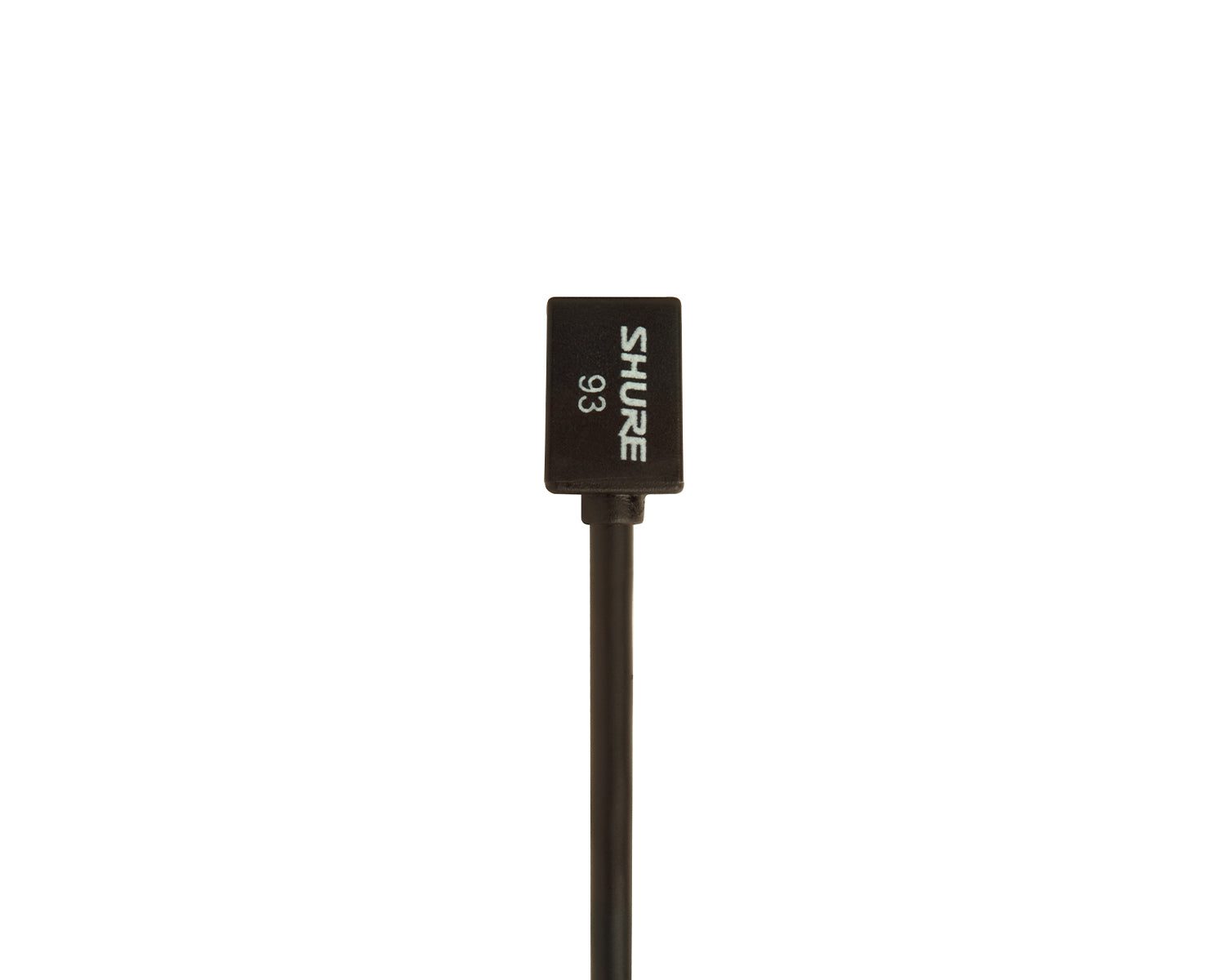 The Shure Model WL93 Microphone is an omnidirectional, subminiature, lavalier electret condenser microphone. Its visually unobtrusive design and tailored frequency response make them ideal for body-worn applications in TV broadcasting, theatre, and sound reinforcement. It features a small microphone element that provides full, clear sound comparable to that of much larger microphones. The WL93, intended for wireless use, connects directly to a Shure wireless body-pack transmitter.The WL93 omnidirectional miniature lavalier condenser microphone is designed for use in speech applications such as broadcast presenting, speeches, lectures and for use in houses of worship.The WL93 is supplied with a sew-on mounting bracket, a mounting block with attached tie bar, and an acoustic windscreen to minimize wind noise in outdoor applications. It is also supplied with a dual mounting block with attached tie bar.